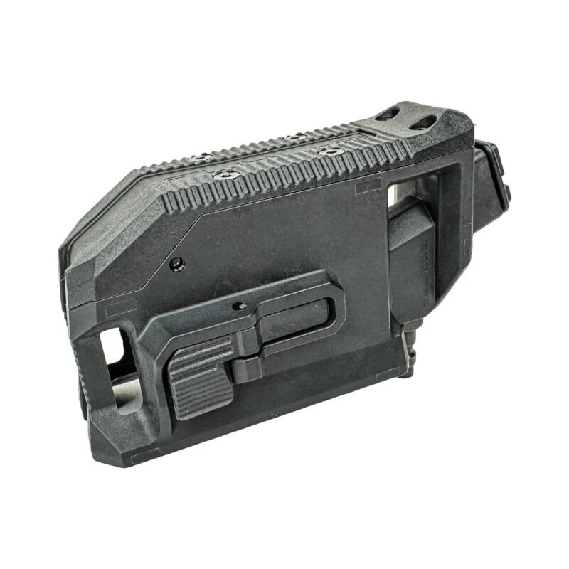 Su diseño en ángulo de 90° mejora la ergonomía y facilita disparos desde posiciones poco convencionales, mientras que su construcción reforzada en nylon con fibra de vidrio garantiza resistencia y durabilidad en las partidas más intensas. Además, incorpora un sistema inteligente que evita la caída de BBs al cambiar de cargador.