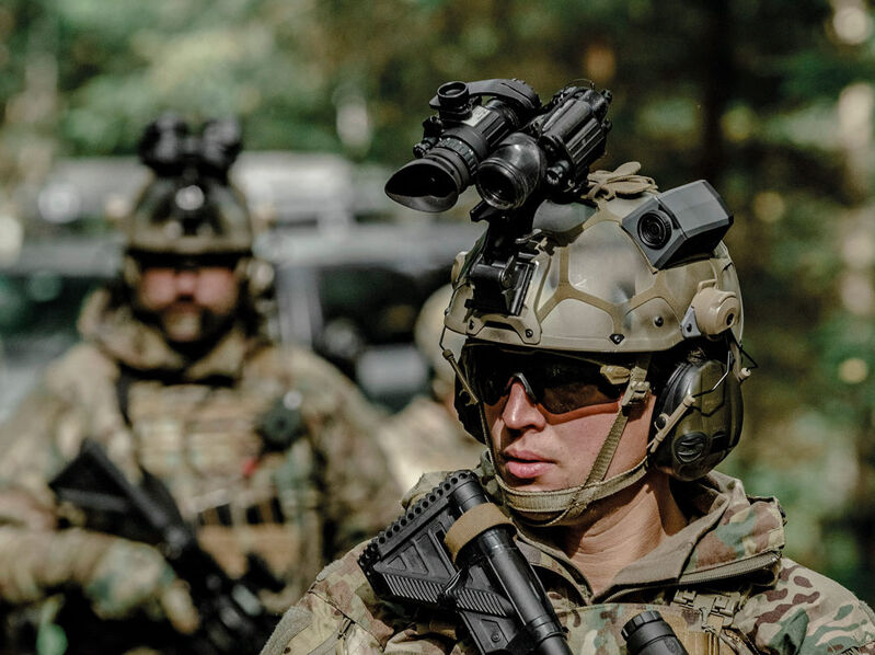 Diseño compacto y discreto: Su forma aerodinámica reduce enganches y garantiza una integración perfecta en cascos tácticos.