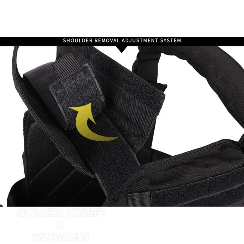 Un chaleco altamente ajustable y personalizable. Que puedes poner a tu gusto gracias a su cummerbund y unas hombreras ajustables con velcro. Además, dicho cummerbund contiene un bolsillo oculto para conseguir aún mayor capacidad de carga. Una opción ideal para aquellos jugadores que estén empezando y quieran algún chaleco táctico full equip con una estética 100% militar.