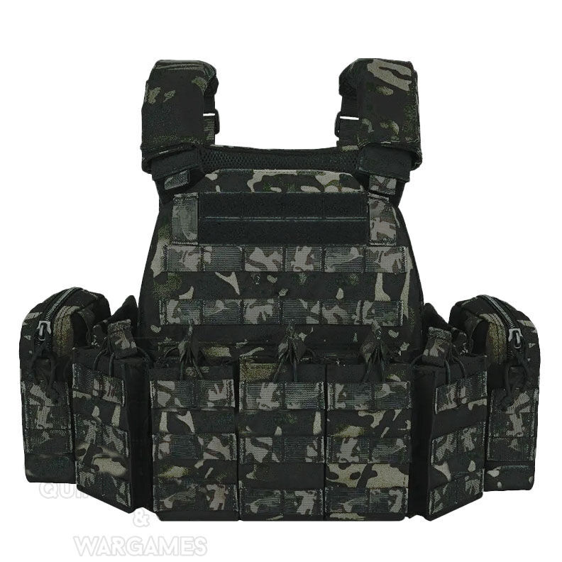 Un chaleco altamente ajustable y personalizable. Que puedes poner a tu gusto gracias a sus cummerbund y unas hombreras ajustables con velcro. Además, dicho cummerbund contiene un bolsillo oculto para conseguir aún mayor capacidad de carga. Una opción ideal para aquellos jugadores que estén empezando y quieran algún chaleco táctico full equip con una estética militar.