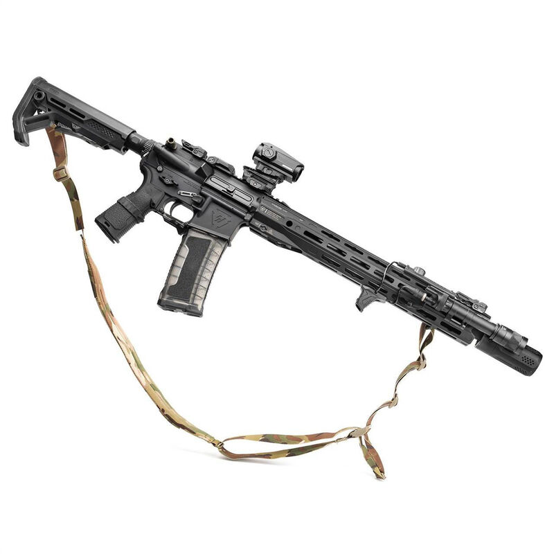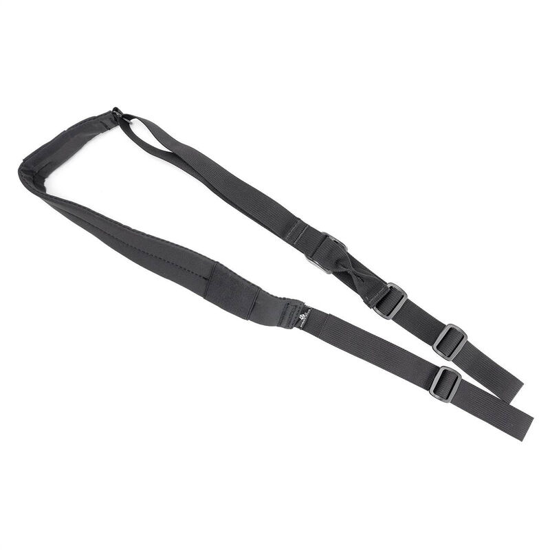 Asa reforzada con costura cruzada, que permite ajustar rápidamente la longitud del portafusil.