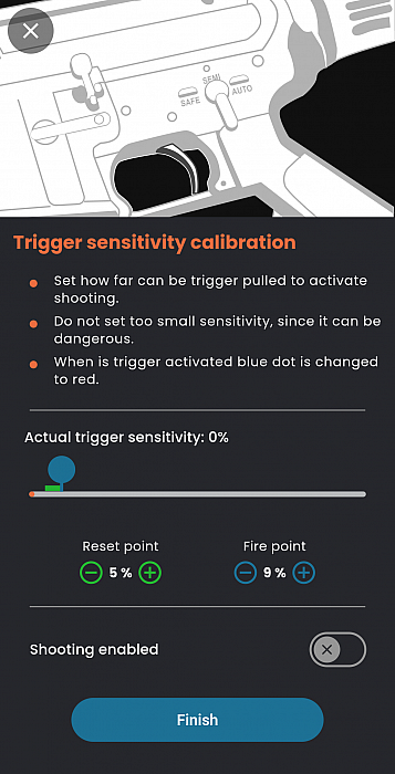 Ajuste de sensibilidad del gatillo desde app móvil, gracias al adaptador con imán incluido.