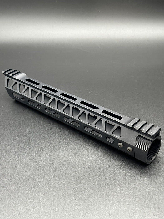 Guardamanos flotante libre de alta calidad fabricado en aluminio CNC para réplicas AR15 de airsoft. Este handguard se instala mediante un barrel nut (incluido) y es compatible con upper receivers que cuenten con rosca M31,5x1 P (rosca derecha).