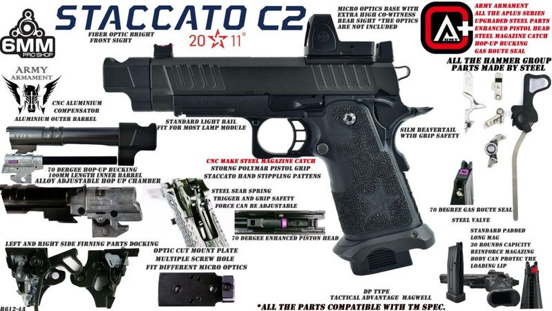 Para los fans de las pistolas, la Staccato 2011 cuenta con un lugar especial en sus corazones. No deja de ser una 1911 pero con esteroides y adaptada a los tiempos modernos. Destaca por su cadencia de tiro y sensación realista. Independientemente del nivel de experiencia, usar esta réplica de pistola es puro placer y disparar con ella es extremadamente agradable sin importar el nivel de habilidad.