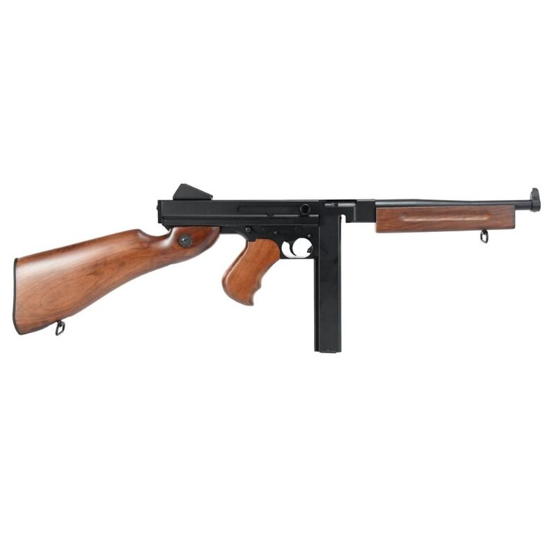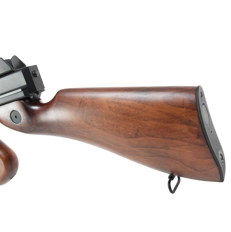 Una réplica de la legendaria subfusil estadounidense M1, en el diseño utilizado por el ejército de los EE. UU. desde la Segunda Guerra Mundial. Su cuerpo de metal le otorga un peso realista, mientras que la culata con acabado de imitación de madera refuerza su estética clásica. Incluye un cargador Hicap y, a pesar de su ergonomía más arcaica y controles poco convencionales, esta réplica ofrece buen rendimiento y durabilidad. Aunque está diseñada principalmente para entusiastas de la Segunda Guerra Mundial, también es una excelente opción para jugadores que buscan un arma ágil sin necesidad de accesorios de puntería avanzados.