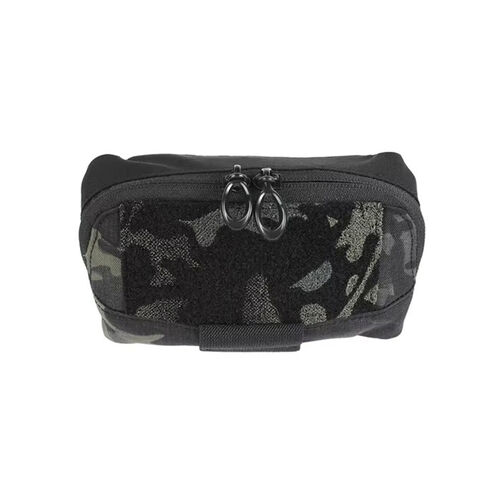 Cuenta con una gran apertura con doble cremallera, que permite un acceso rápido al contenido sin riesgo de que se caigan los objetos al abrirlo completamente. El pouch está fabricado con sistema MOLLE integrado y pestañas rígidas tipo “tuck tab” que aseguran una fijación firme sin añadir volumen innecesario.