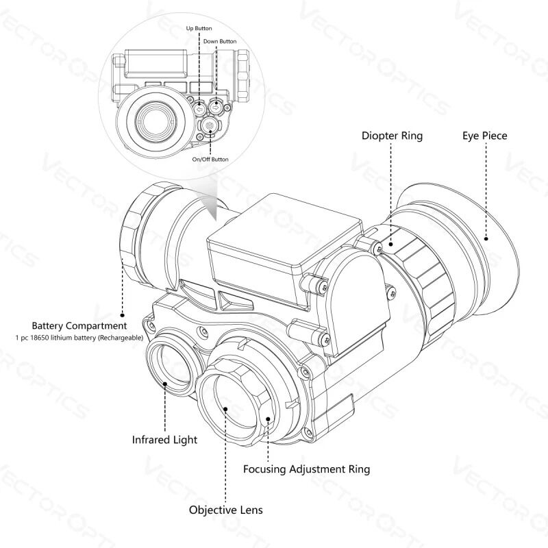 El OWLSET Digital Night Vision HD (DigiNVG) de Vector Optics es un sistema de alta gama diseñado para ofrecer la máxima capacidad de observación durante operaciones nocturnas. Con un aumento óptico de 1x y un zoom digital de 3x, proporciona una imagen clara y detallada con una resolución Full HD de 1920x1080.
