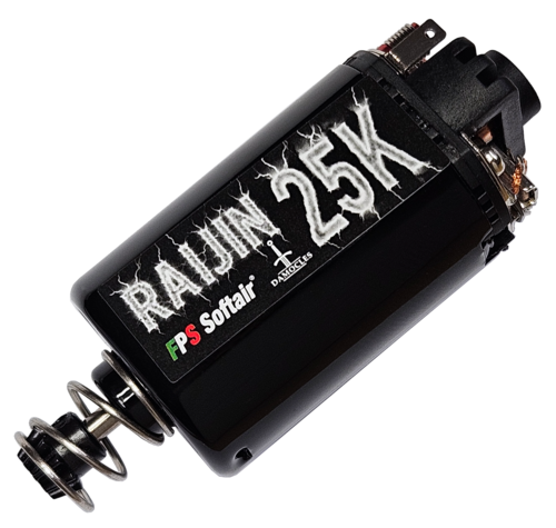 El FPS Raijin 25K es un motor DC de alto rendimiento diseñado en Italia por FPS Softair en colaboración con Damocles y La Tartaruga Softair (LTS). Pensado para ofrecer una respuesta instantánea en semiautomático y un rendimiento estable, combina alto par y velocidad equilibrada, siendo compatible con relaciones de engranajes desde 18:1 hasta 12:1, así como Dual Sector Gear. Su construcción premium garantiza eficiencia, bajo ruido y fiabilidad incluso en configuraciones exigentes de hasta 1,5 joules.