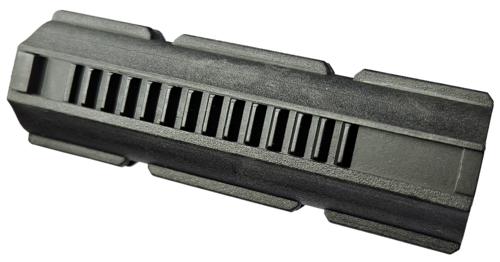 Además, las costillas especiales reducen la superficie de contacto entre el resorte y el interior del pistón, disminuyendo la fricción durante el ciclo de disparo.