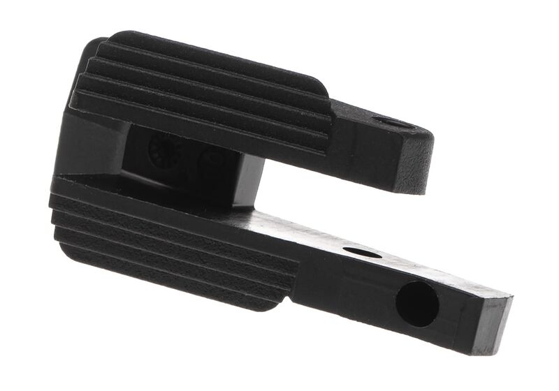 Fabricado en polímero de alta resistencia, combina ligereza con durabilidad. Su mayor superficie de contacto ofrece un accionamiento más seguro sin aumentar el volumen del arma. Las ranuras texturizadas aseguran un uso fiable incluso con guantes, y su ángulo de palanca optimizado garantiza una liberación clara y efectiva.