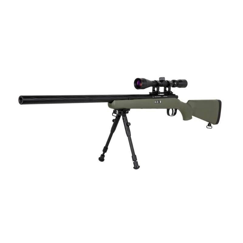 Basado en la legendaria plataforma VSR-10, este fusil de muelle ofrece una potencia de disparo en torno a los 560 FPS, perfecta para roles de francotirador en partidas milsim o de campo abierto. Gracias a su hop-up ajustable y su cañón de precisión de 6.03 mm de diámetro y 490 mm de largo, consigue una excelente estabilidad y agrupación a largas distancias. Además, su construcción en polímero reforzado y componentes metálicos logra un equilibrio ideal entre resistencia y ligereza (solo 2,5 kg), manteniéndolo maniobrable incluso con visor y bípode montados.