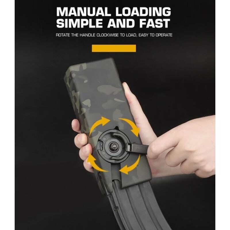 Olvídate de rellenar el cargador tras cada magazine. Gracias a su sistema de palanca rotatoria, permite cargar cargadores mid-cap de forma cómoda y extremadamente rápida, optimizando el tiempo entre partidas o durante el juego.