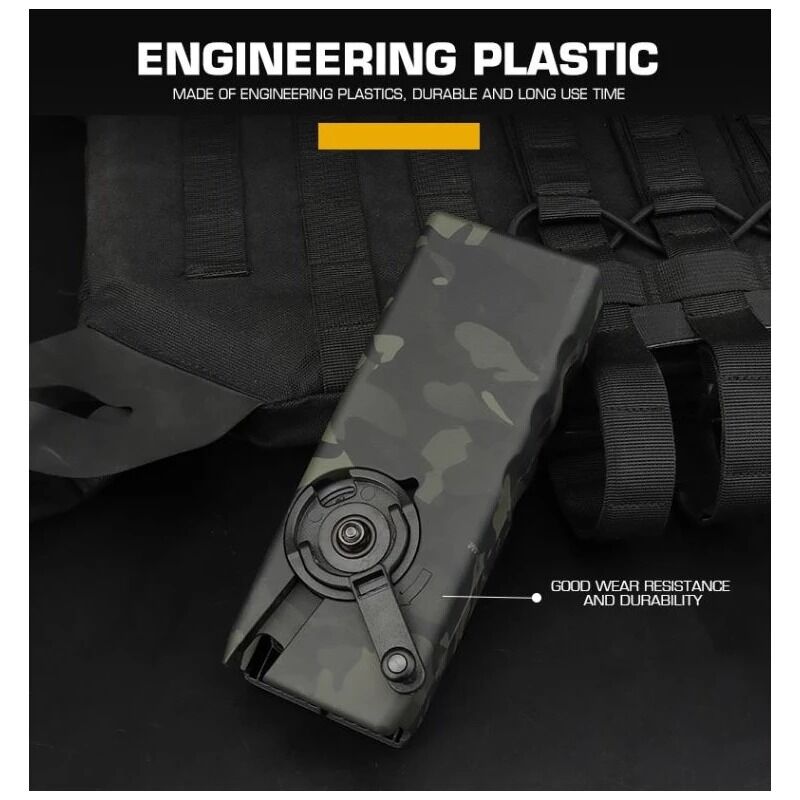 Su diseño compacto encaja perfectamente en bolsillos dobles para cargadores M4/AR15, facilitando su transporte en el chaleco táctico. Aunque está optimizado para cargadores M4/AR15, también puede utilizarse con cargadores AK, MP5 y G36 mediante adaptadores (no incluidos).