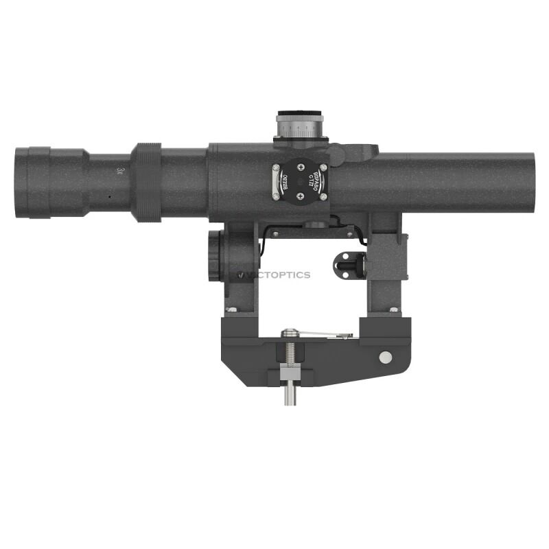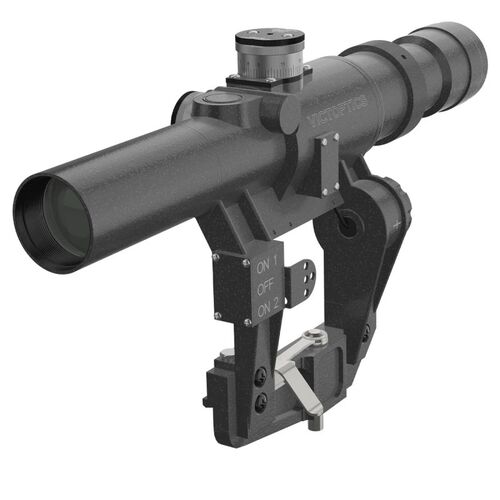 La retícula grabada estilo SVD, junto con la cubierta para el lente ocular, ofrece una precisión de puntería excepcional. El sistema de montaje lateral, diseñado especialmente para rifles de la serie AK, garantiza una fijación segura y fiable.