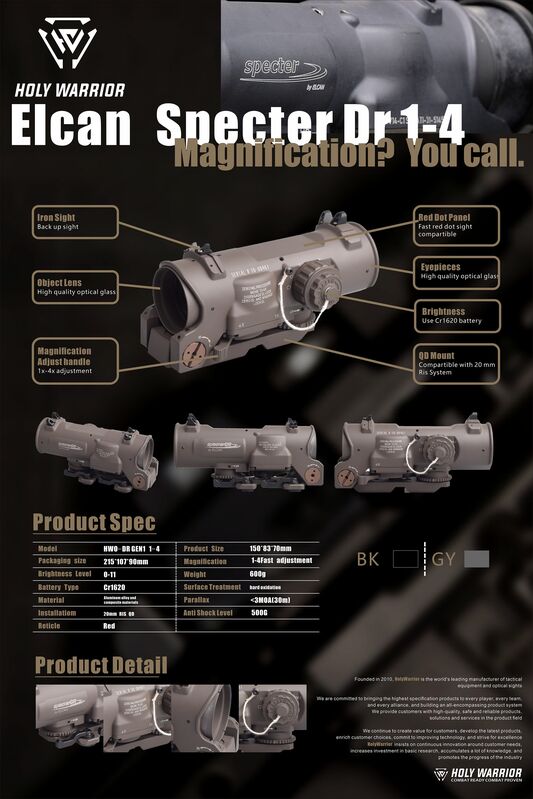 1× Visor Holy Warrior Elcan DR Gen3 1-4X con Red Dot superior tipo DOC
