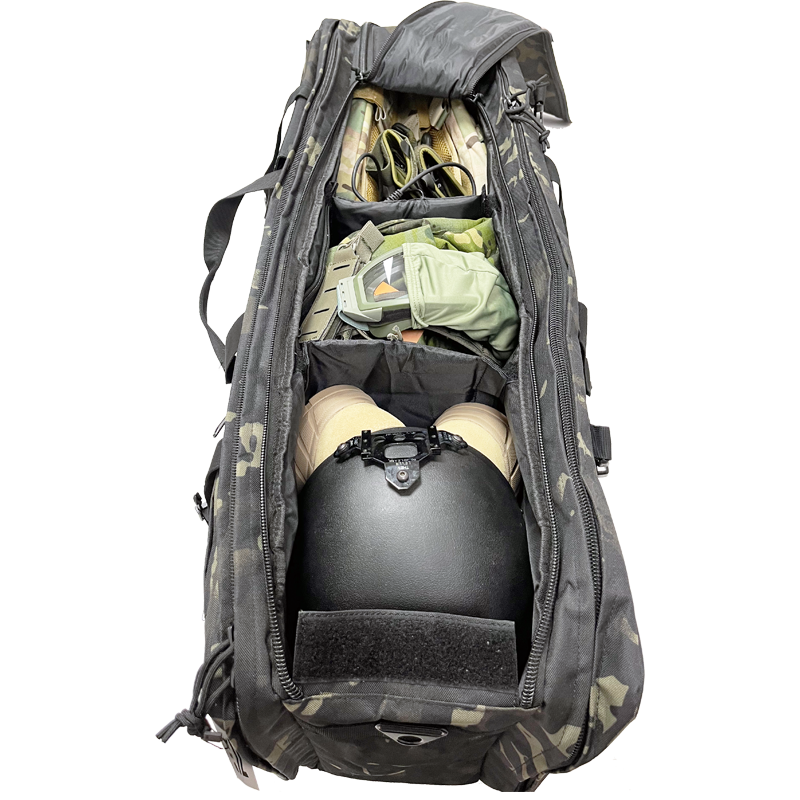 Su diseño inteligente incluye aberturas laterales para armas largas y un gran bolsillo central con separadores modulares, que facilitan la organización y protección de cada elemento del equipo. Fabricada con materiales resistentes, garantiza durabilidad y soporte incluso en condiciones exigentes.