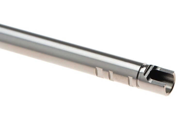 Si buscas mejorar la precisión y consistencia de tu réplica GBB, el cañón interno Crazy Jet de Maple Leaf es una de las mejores opciones del mercado. Con un diámetro interno de 6.04 mm y una longitud de 260 mm, este cañón está diseñado específicamente para ofrecer una trayectoria más estable y agrupaciones más cerradas.