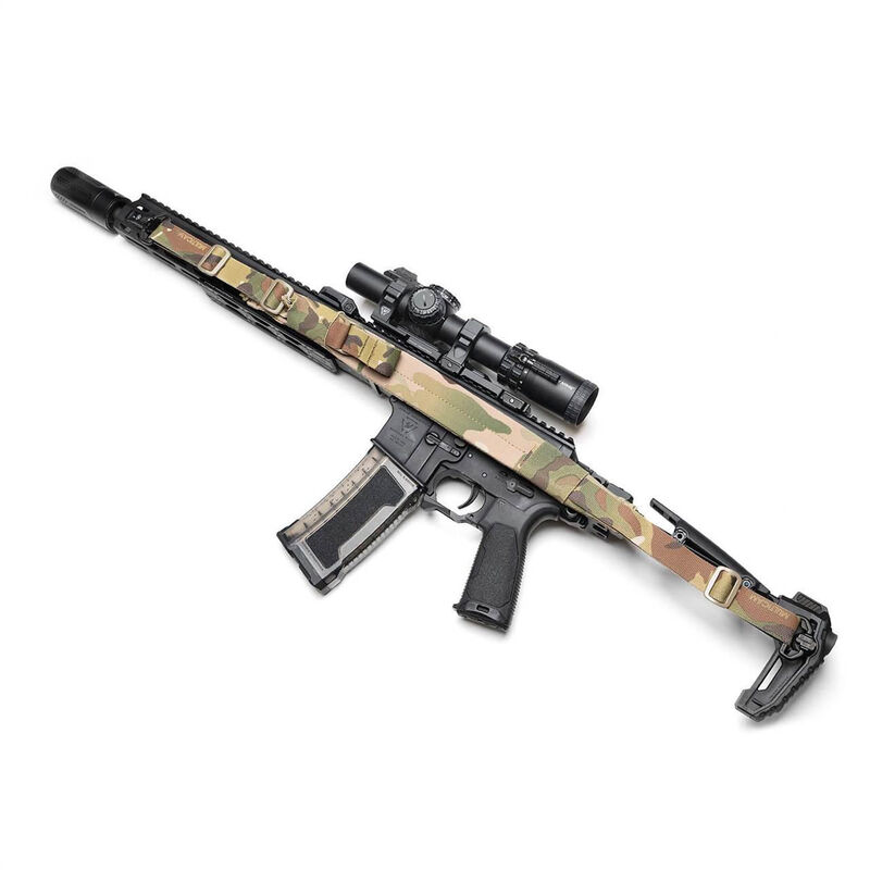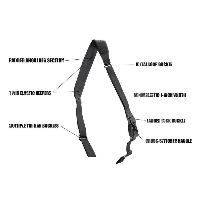 Asa reforzada con costura cruzada, que permite ajustar rápidamente la longitud del portafusil.