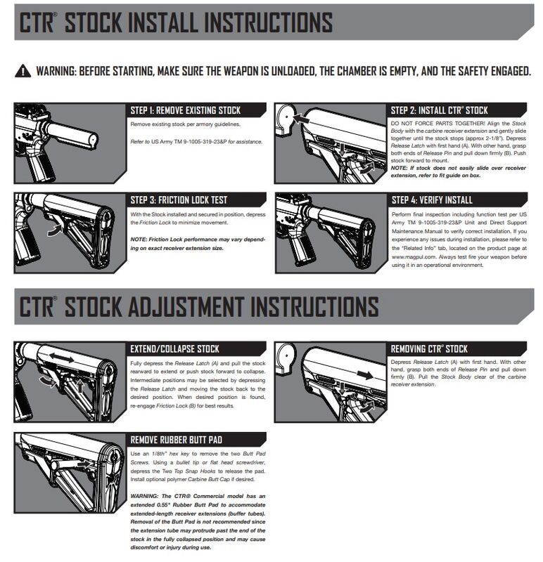 • Compatibilidad: Tubo de culata Mil-Spec para carabinas (no incluido). Compatible con fabricantes comunes (Colt, Armalite, S&W, LMT, etc.). No compatible con tubo Commercial-Spec.