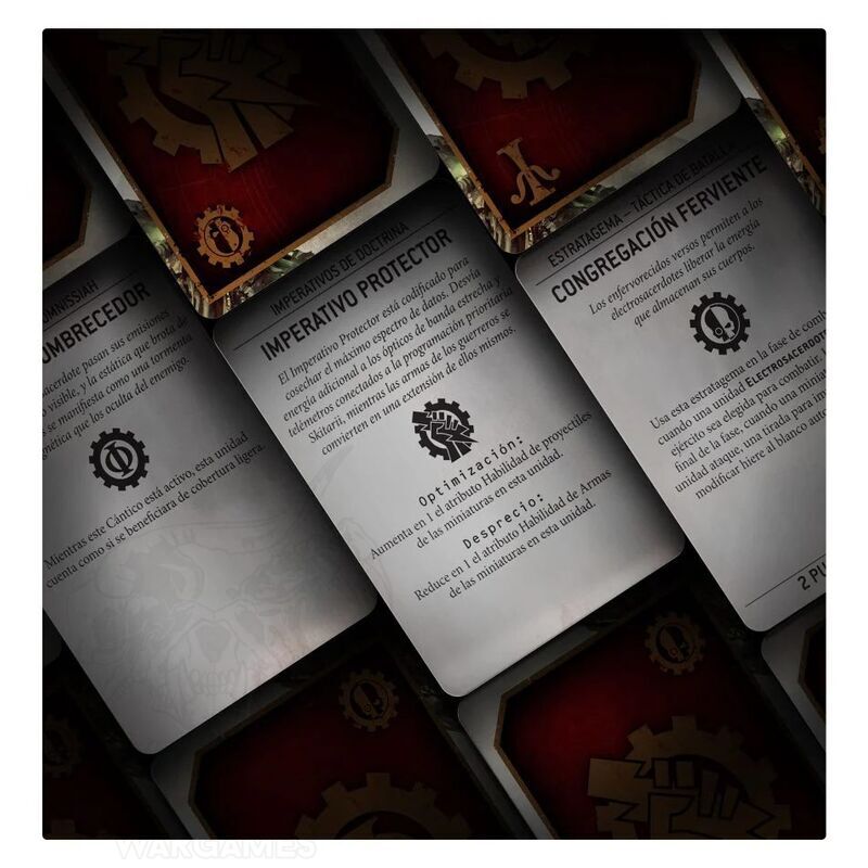 Necesitarás un ejemplar del Libro básico de Warhammer 40,000 y del Codex: Adeptus Mechanicus para utilizar estas tarjetas.