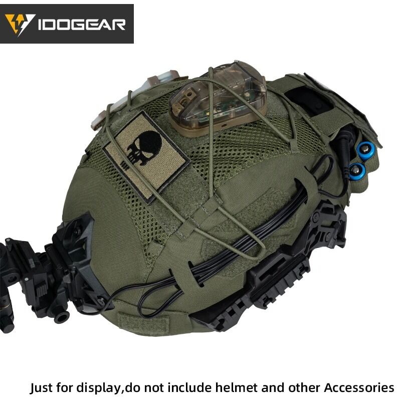 Funda para cambiarle el aspecto a tu casco en un momento y darle un aspecto más tacticool; la funda tiene diferentes zonas donde podrás acoplar diferentes parches, además de poder poner diferentes luces E lite light para señalizar que estás muerto o avisar a tus compañeros de tu presencia o incluso enganchar vegetación para romper tu perfil y mejorar tu nivel de camuflaje. Además de incorporar ya el espacio para contrapesos en tu casco y las gomas elásticas para tener tus cables organizados y que no molesten. Un matar dos pájaros de un tiro de manual.