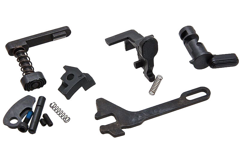 La dureza del martillo puede ajustarse fácilmente entre 100% y 160%, y mantiene compatibilidad con muelles de martillo estándar Tokyo Marui. Incluye además un bolt stop plate de acero al carbono, aligerado y tratado térmicamente para mayor resistencia, junto con un muelle de bolt stop al 80%, ideal para configuraciones rápidas sin comprometer fiabilidad.