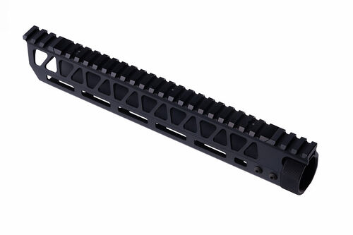 Guardamanos flotante libre de alta calidad fabricado en aluminio CNC para réplicas AR15 de airsoft. Este handguard se instala mediante un barrel nut (incluido) y es compatible con upper receivers que cuenten con rosca M31,5x1 P (rosca derecha).