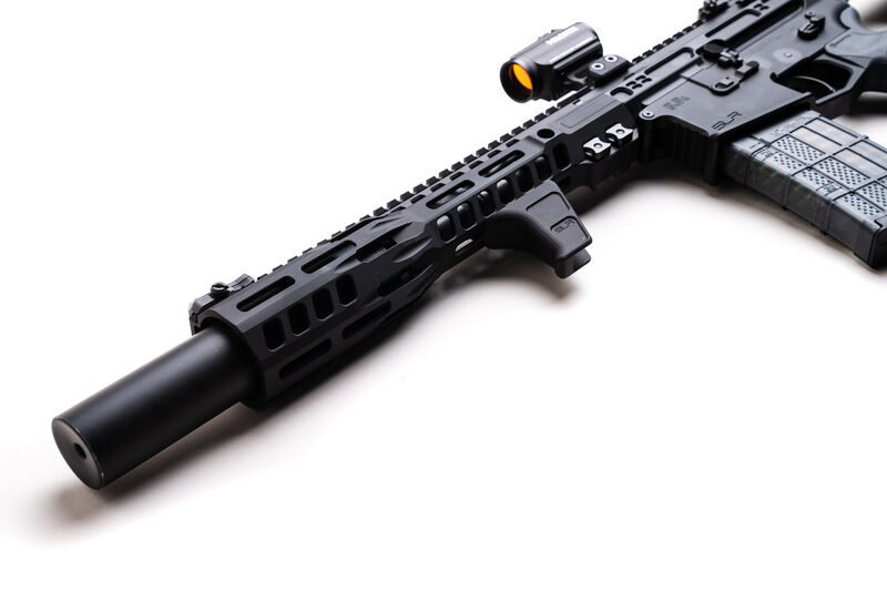 Su diseño bajo y minimalista no añade volumen innecesario al guardamanos, manteniendo una estética limpia y moderna. También puede utilizarse como punto de referencia para manipulación del arma o como tope delantero al usar técnicas de tiro tipo C-Clamp.