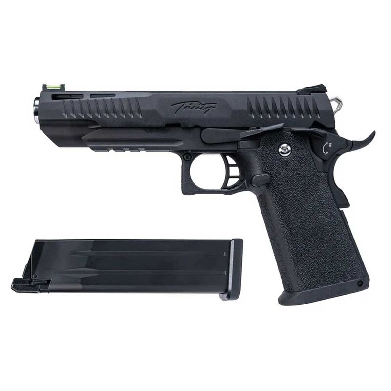 La Hi-Capa Trinity es el resultado de la colaboración entre ASG y Modify, pensada para jugadores que buscan rendimiento, durabilidad y un diseño agresivo directamente desde la caja. Esta pistola GBB (Gas Blowback) está optimizada para airsoft deportivo, destacando tanto en precisión como en respuesta gracias a sus componentes internos mejorados.