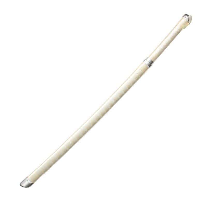 El tsuka (empuñadura) presenta un diseño sencillo forrado con cinta blanca que mejora el agarre y aporta coherencia estética al conjunto. Tanto la estructura principal como el tsuba están fabricados en plástico resistente, ayudando a mantener un peso contenido y aumentando la seguridad durante su uso.