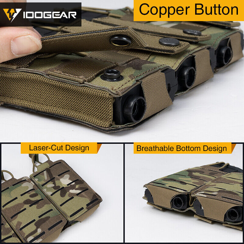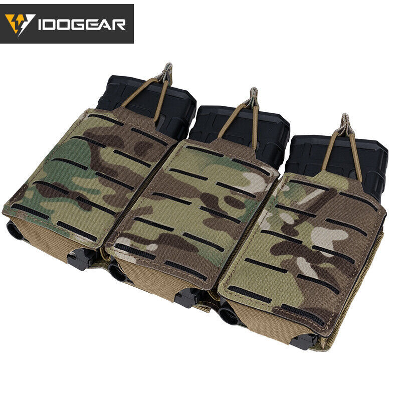 Siempre va bien llevar más munición encima; por eso nos hacen falta algún que otro pouch para cargador de rifle. Ahora Idogear ha cogido uno de las pouches más básicos para nuestra equipación como es el pouch triple para cargador de fusil y le ha dado un toque más moderno y tacticool; con su estilo larser cut le da un perfil más bajo que el típico MOLE.