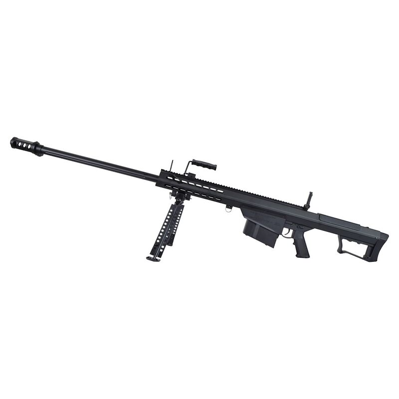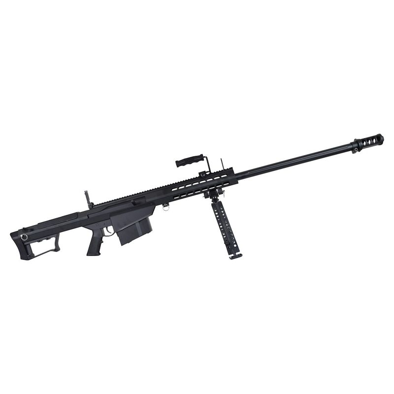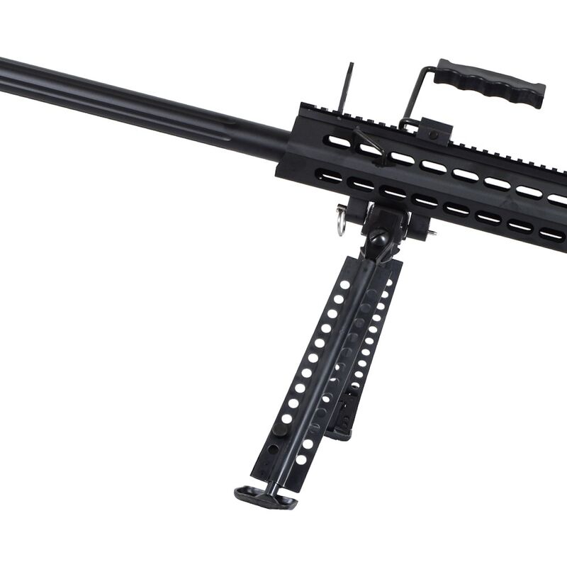 La réplica M107 Barrett — Snow Wolf reproduce la silueta y presencia del arma real en formato airsoft bolt-action, con licencia oficial BARRETT (6mmPROSHOP) para asegurar acabados fieles. Cuenta con receivers y outer barrel metálicos, pistol grip y flash hider en polímero, cargador mid-cap metálico de 50 BB, riel superior 20 mm para ópticas, bípode metálico plegable y un monopod ajustable y desmontable en la culata; además trae miras plegables y hop-up ajustable para optimizar la precisión. Su construcción busca tanto realismo estético como durabilidad en uso recreativo y de coleccionismo.