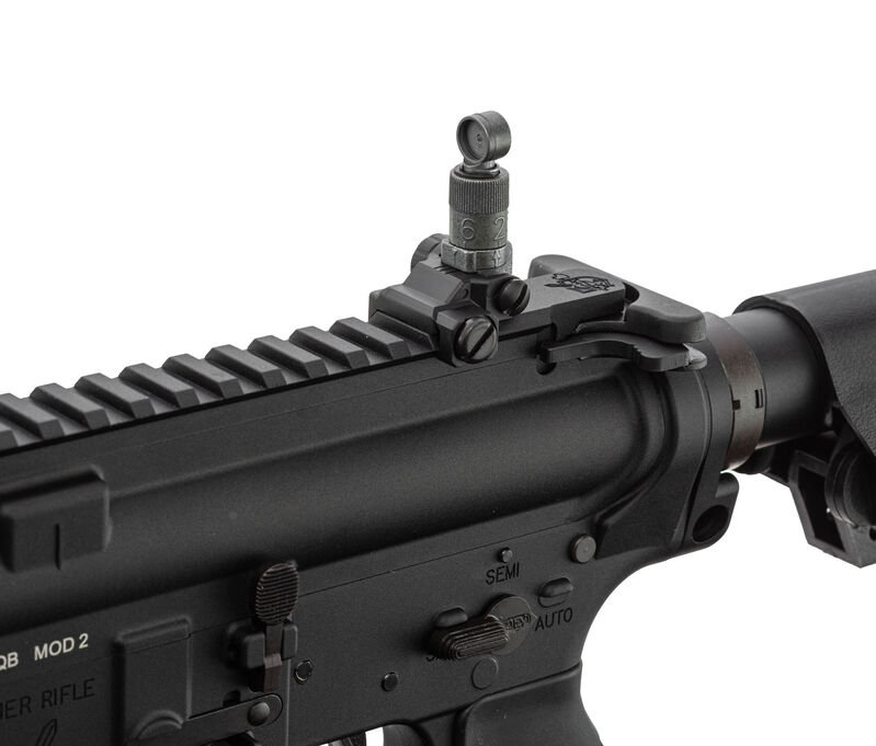 Pensada para jugadores exigentes y coleccionistas, incorpora miras abatibles desmontables, selector ambidiestro, apagallamas roscado en 14 mm CCW compatible con supresores y tracers, así como componentes internos reforzados (por ejemplo, martillo en acero reforzado) para mejorar durabilidad y fiabilidad en uso intensivo. Además, mantiene compatibilidad con cargadores VFC de generaciones anteriores, facilitando la interoperabilidad de tu equipo.