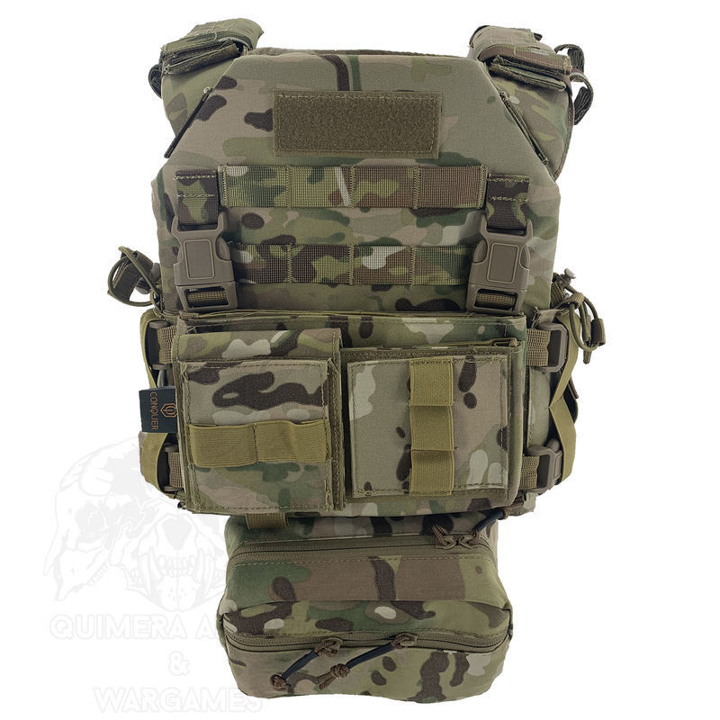 Este pack consta del Plate Carrier o Porta Placas modelo MPC y del Mini Chest Rig de la marca Conquer, de la cual surge una perfecta combinación de protección y una alta versabilidad de pouches los cuales se adaptan a las necesidades del usuario. En caso de querer usarse por separado, se puede hacer sin problema, ya que se incluyen todos los correajes.