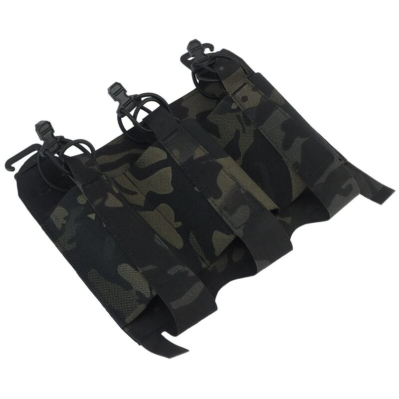 El TEAR(Triple Elastic AR) Front Flap es una opción de perfil ultrabajo y acceso rápido para portar tres cargadores de fusil tipo AR (5.56 / .223 / 7.62x39). Gracias a su diseño en elástico de alta resistencia, ofrece una retención firme y silenciosa, ideal para configuraciones discretas o de alta movilidad.