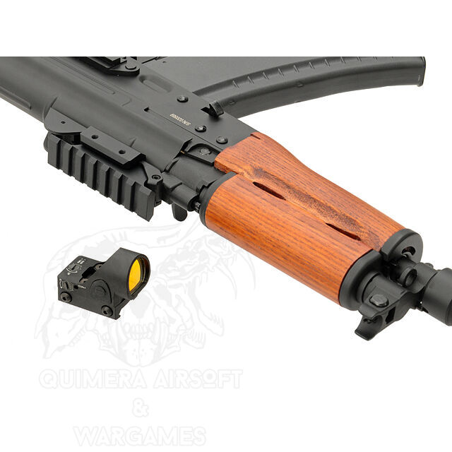 Pon tu AKS74U más tacticool y con un +10 en precisión si utilizas este raíl en combo con una mira. Al permitir la instalación de miras más avanzadas y precisas, el riel B-18 contribuye a mejorar la precisión y la capacidad de apuntar de tu rifle de airsoft. El riel B-18 ha sido diseñado para complementar el aspecto estético del AKS-74U, brindando una apariencia auténtica y táctica al rifle. Esto no solo mejora la funcionalidad, sino que también agrega un toque de estilo a tu equipo.