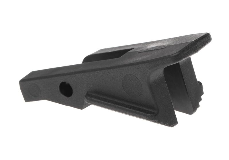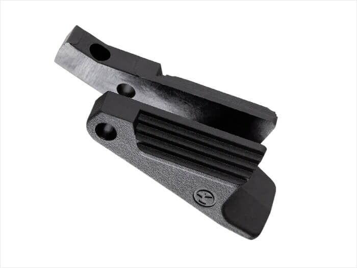 Fabricado en polímero de alta resistencia, combina ligereza con durabilidad. Su mayor superficie de contacto ofrece un accionamiento más seguro sin aumentar el volumen del arma. Las ranuras texturizadas aseguran un uso fiable incluso con guantes, y su ángulo de palanca optimizado garantiza una liberación clara y efectiva.