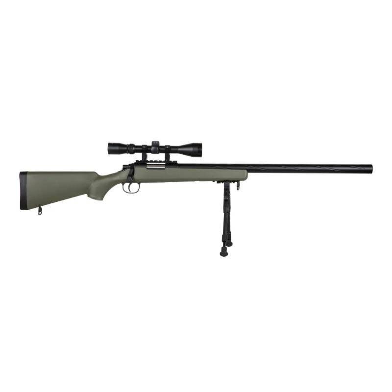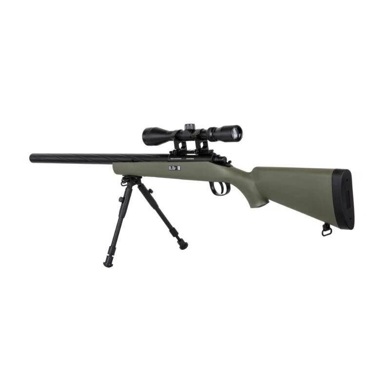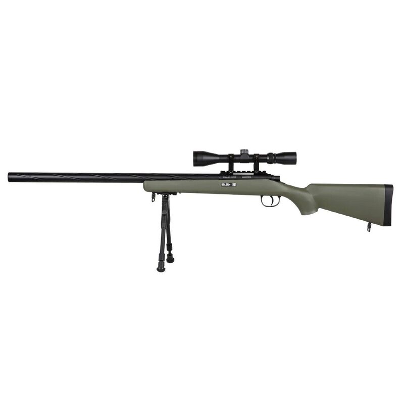 Basado en la legendaria plataforma VSR-10, este fusil de muelle ofrece una potencia de disparo en torno a los 560 FPS, perfecta para roles de francotirador en partidas milsim o de campo abierto. Gracias a su hop-up ajustable y su cañón de precisión de 6.03 mm de diámetro y 490 mm de largo, consigue una excelente estabilidad y agrupación a largas distancias. Además, su construcción en polímero reforzado y componentes metálicos logra un equilibrio ideal entre resistencia y ligereza (solo 2,5 kg), manteniéndolo maniobrable incluso con visor y bípode montados.