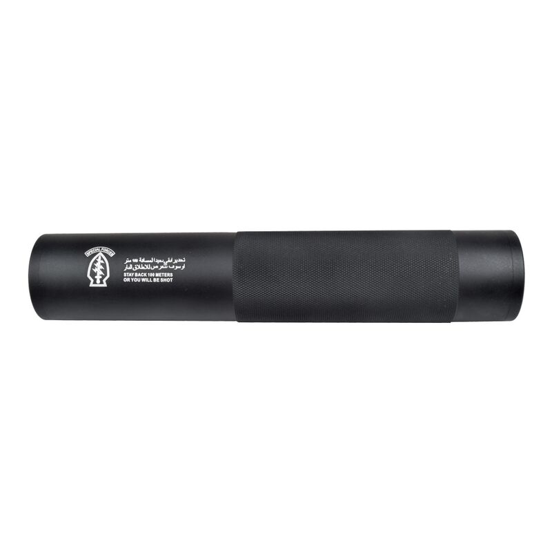 Se trata de un accesorio para darle un toque más táctico a nuestra réplica. El silenciador está construido con materiales duraderos y de alta calidad para garantizar su resistencia y durabilidad en el campo de juego. Tiene una longitud de 190 mm y un diámetro de 35 mm.